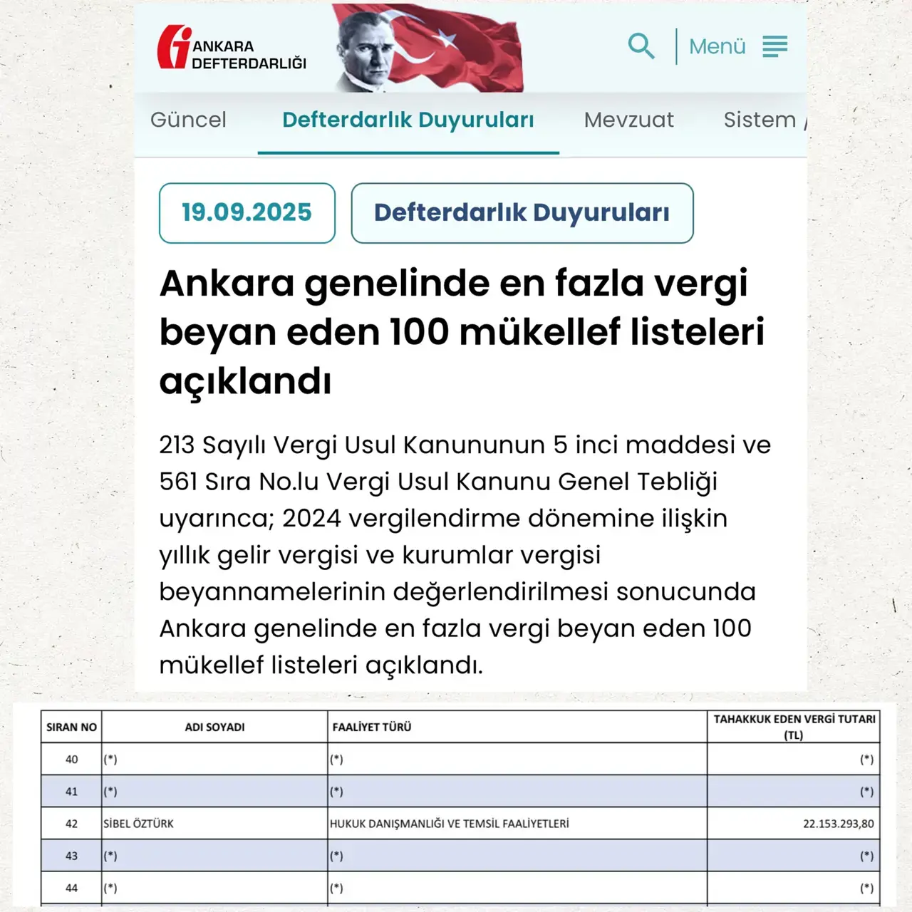 Av. Sibel ÖZTÜRK, üçüncü defa “Ankara İli Vergi Rekortmenleri” listesinde yer almıştır.
